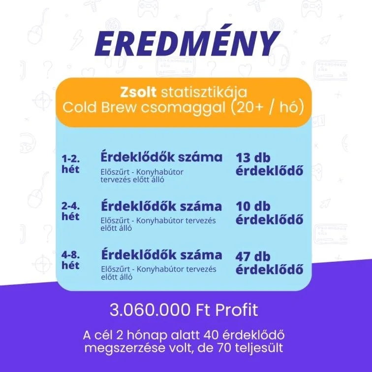 Az AI-alapú leadrendszer sok esetben már az első héten képes "forró" érdeklődőket hozni, máskor azonban idő kell, amíg az érdeklődő "megérik" a vásárlásra. Ezért javasoljuk a legalább 2-3 hónapos tesztidőszakot.